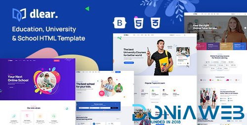 Dlear – Education HTML Template. It’s suitable for any University, Online Course / Online Learning, Workshop, College, School, Kindergarten, Event, UI/UX Course, Language Learning Programme, Course hub or any kind of educational institution…