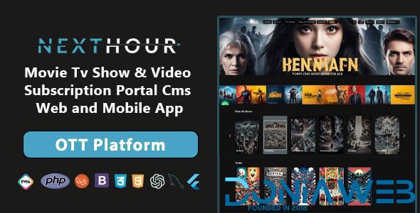 Next Hour – Movie Tv Show & Video Subscription Portal Cms Web and Mobile App is built for movie show, tv show, tv series, tv episode, movie cms, movie streaming, php video script, video cms, video membership, video portal, video script, video subscription platform, video website, magazine, vimeo, youtube etc.