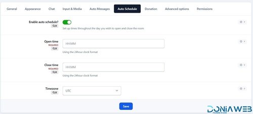 • Admin can create multiple rooms, display rooms in widgets, or a new page.