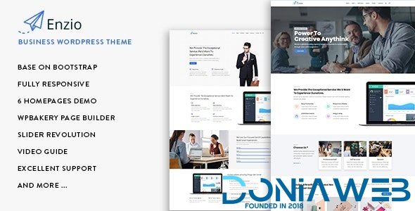 WordPress theme with fuly responsive design. A great candidate for any type of website, for personal or business use, Enzio is easy to use and highly customizable. Designed with user friendliness in mind, Enzio sports a distinctly unique, modern look. The theme has its own super powerful theme control panel with lots of useful options and tools to manage your site: WPBakery Page Builder, Revolution Slider, Custom Icon Font, etc. and the theme apply the latest web technologies: Bootstrap 3, SASS, HTML5, CSS3, Font Awesome … Check the demos to see by yourself.