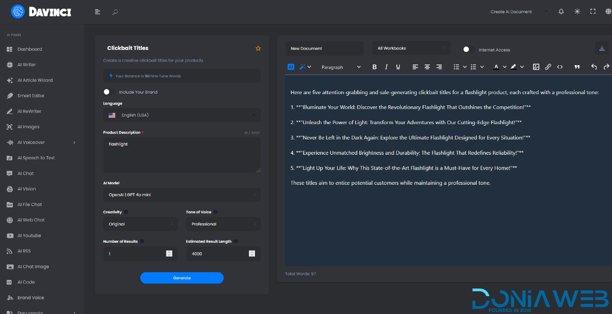 - DaVinci AI - OpenAI Content, Text, Image, Voice, Chat, Code, Transcript, and Video Generator as SaaS v6.3